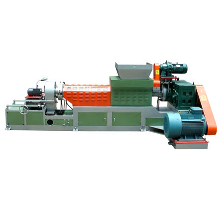 該機(jī)組是我公司近年來投入生產(chǎn)的專用“EVA”造粒設(shè)備,與同規(guī)格密煉機(jī)、開煉機(jī)相組合后,集塑煉、擠出造粒、冷卻、篩選、成品包裝于一體,構(gòu)成一條完整的生產(chǎn)流水線。機(jī)組根據(jù)“EVA”材質(zhì)在高溫、高壓的擠出環(huán)境下容易發(fā)泡的特性,對主機(jī)料筒螺桿結(jié)構(gòu)作出特殊設(shè)計(jì),加熱系統(tǒng)、循環(huán)水冷卻系統(tǒng)結(jié)合一套靈敏度高的溫度測控電路,能精確控制擠出溫度,有效的避免了“EVA”材質(zhì)在擠出過程中的發(fā)泡和色差的產(chǎn)生,使成品具有粒度均勻、觀感好、質(zhì)量上乘等優(yōu)點(diǎn),機(jī)組運(yùn)行性能穩(wěn)定、生產(chǎn)效率較高,成品材料廣泛用于EVA鞋材或其它工業(yè)用EVA材料造粒。